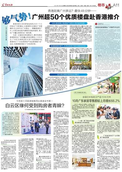 文/图 羊城晚报记者 陈玉霞 香港买家从深圳罗湖坐轻轨大约一个小时能达广州新塘站;从香港西九龙通过广深港高铁48分钟可达广州南站……随着香港和广州、大湾区其他城市通联时间越来越短,
