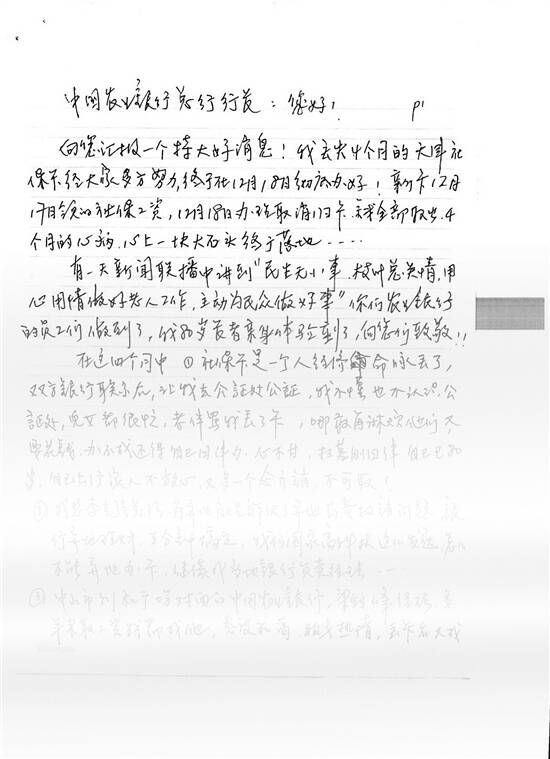 高奶奶写给农行总行的表扬信 |