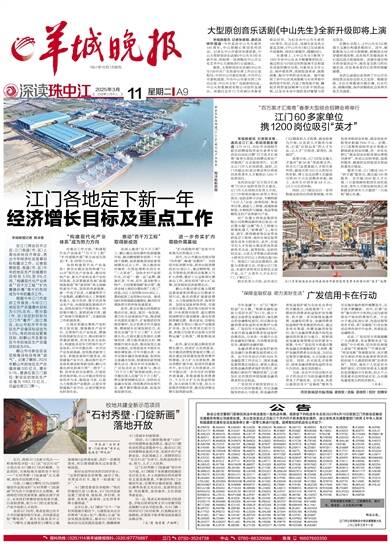 1957年10月1日创刊 2025年3月11日 乙巳年二月十二 星期二 报料热线:(020)114转羊城晚报报料、(020)87776887 江门 0