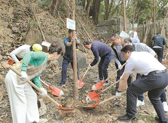 羊城晚报讯 记者郑明达、通讯员朱燕珊摄影报道:阳春三月,草长莺飞,正是植树造林的好时节。3月12日,福田区香蜜湖街道香岭社区党委在深圳园博园鸣翠湖畔举办“‘党建红’引领‘生态绿’,同心共建绿美香岭”植树节共建活动暨政协委员进社区活动。福田区政协副主席田晖南、王晓蓉,香蜜湖街道党工委副书记、办事处主任温现青一行及深圳市建安集团、巴士集团第四分公司等共建单位积极参与,以实际行动践行绿色发展理念,共建共治共享“绿美福田”。 植树现场,大家热情高涨、干劲十足。在专业技术人员的指导下,王晓蓉与温现青带头挥锹铲土,区政协常委们和建安集团、巴士集团第四分公司基层党支部齐心协力、扶苗填坑、浇水灌溉,一棵棵落羽杉树苗在鸣翠湖畔“安家落户”,为园博园增添了一道亮丽的风景线。 据悉,此次种植的55棵落羽杉树苗由香岭社区挂点区政协委员叶国税捐赠,不仅为香岭社区带来了实实在在的生态效益,也展现了政协委员心系社区、服务群众的担当与情怀。 此次植树节共建活动,增强了党员群众的生态环保意识,更凝聚了共建绿美香岭的强大合力。下一步,香岭社区党委将坚持党建引领,以“一强四好一满意”为目标,深化“绿美香岭”建设,不断提升社区生态环境品质,努力打造宜居宜业宜游的美丽香岭,为深圳建设生态文明典范城市贡献力量。