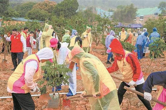 羊城晚报讯 记者张德钢、通讯员钟轩报道:3月9日至12日,中山市与云浮市共同开展“中山-云浮共建青年林”活动和“晚晴芳草 绿美双城”2025年中山-云浮友谊林互种活动,以绿美生态共建为纽带,深化两地交流协作,推动青年力量赋能乡村振兴,为绿美广东生态建设和“百千万工程”注入新动能。中山市委常委、组织部部长梁子财,团省委副书记陈伟健等领导出席活动,中山市委组织部、市委编办、市委老干部局、市委党校、市总工会、团市委、市妇联、三乡镇党员干部及中山、云浮两地青年代表共计240余人参与植树活动。 中山、云浮两地人文相近、往来密切,在推动“百千万工程”“绿美广东”建设等多个领域具有相互学习共建的良好基础。中山市在2011年获评“中国沉香之乡”,云浮市郁南县也被誉为“中国无核黄皮果之乡”。秉持着“云浮的黄皮种来中山,中山的沉香种去云浮”理念,3月9日,中山、云浮两地青年代表在云浮市郁南县共同栽下近500株中山土沉香,精心打造青年绿美公园,书写两地生态共建新篇章。 3月12日植树节当天,中山市组织开展“晚晴芳草 绿美双城”2025年中山-云浮友谊林互种活动,引领全市广大老干部与团员青年、少先队员“大手拉小手”积极参与爱绿植绿护绿活动。活动现场,众人分工协作,挥锹培土、扶苗浇水,齐心协力种下近700棵无核黄皮树。活动还将同步上线广东省“绿美青年林”小程序,通过数字化平台实现“种植-养护-成长”全过程跟踪管理,实现绿美植树活动智能化管理升级。活动还发动了中山市青联委员、青年企业家、青年志愿者等多元力量参与,营造全社会共同植绿护绿的浓厚氛围。活动现场还邀请了云浮市黄皮种植乡土专家开设乡村振兴绿美讲堂,面对面讲授云浮无核黄皮树种特色和种植养护技术,推动中山黄皮种植与云浮经验深度融合。 近年来,随着中山云浮的产业联动更加密切,乡村振兴新动能被持续激发。数据显示,2024年,云浮市郁南县无核黄皮种植面积达19.5万亩,产值突破63亿元,占据全球种植面积近3/4。中山市三乡镇也具有黄皮种植的优势条件,活动所在地点茅湾村,几乎家家户户原居民的庭院里都种有黄皮树,村内更特别设置了“黄皮科普园”,市民可以一站式学习黄皮种植、采摘和制作果脯的知识。 据介绍,以本次青年友谊林共建活动为契机,中山云浮两地聚焦沉香、黄皮产业,共同探索“特色产业+生态共建”融合发展新路径,以青年智慧为“百千万工程”和“绿美广东”建设做出更多实践尝试,同时也为两地的交流合作搭建更紧密的沟通桥梁,为乡村振兴和生态建设注入崭新活力。