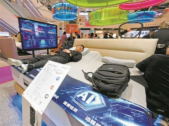 本届“两展”展出AI智能床引来不少客商体验 |