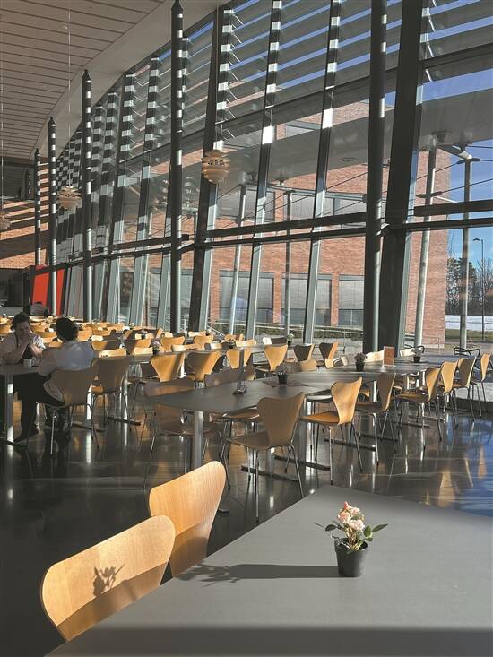 韦成璐就读的挪威东南大学位于首都奥斯陆,位置偏僻,规模较小,但设施完备,设计人性化。她介绍:“学校只有一栋教学楼、一个体育馆和一个微电子研究院,但内部设施齐全,从课堂到实验室很方便,节省了很多时间。值得一提的是建筑大都采用玻璃,当阳光透过玻璃洒入室内,即便是寒冷的冬日,也给我一种温暖的感觉。”