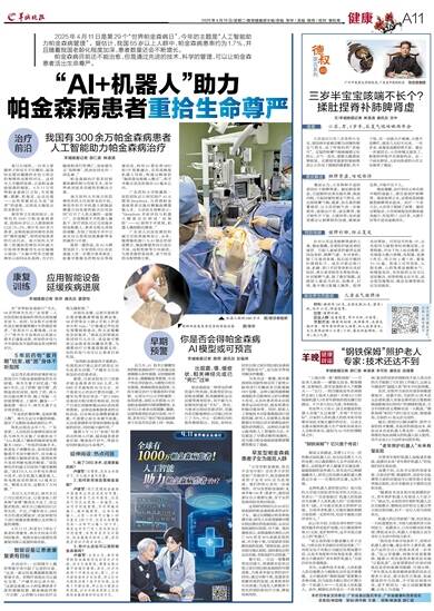 转机出现在去年7月。广东省第二人民医院功能神经病区团队为林先生实施了全麻状态下“AI+机器人”辅助的脑深部电刺激术(DBS)。“传统的局麻手术,患者处于清醒状态,容易因恐惧脑部手术而中断治疗,而全麻又会抑制大脑核团放电,使得医师不容易判断电极的精度。”该院神经外科副主任医师卢健军解释道,“我们引入AI分析电生理信号技术,结合机器人辅助植入,将电极误差控制在0.2毫米以内。精准又安全,这解决了大问题。”
