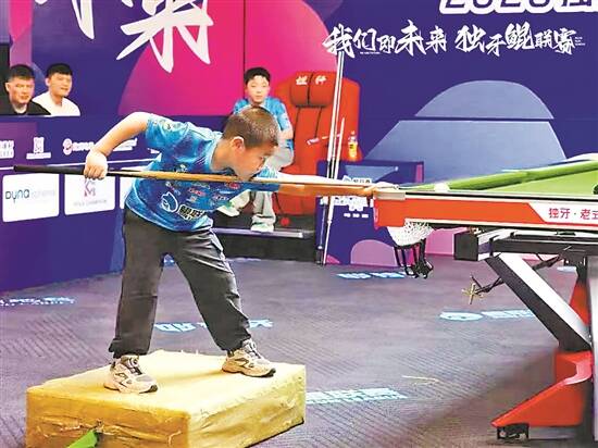 羊城晚报讯 记者文聪、通讯员刘苏东摄影报道:近日,一条“小孩哥拖着垫子打台球比赛”的视频在各大网络平台刷屏。视频中,小孩哥一边拖着特制的“增高垫”满场跑,一边调整架杆精准击球,天赋直接拉满。据了解,这名超酷小孩哥名叫吴一人,今年5岁,是东莞市大朗中心幼儿园大班的学生,同时也是中国台球协会国家队教练李建兵执教生涯中年龄最小的弟子。 吴一人的爸爸吴治建来自茂名,是一名全科医生,对于儿子火遍全网,他感到非常自豪和期待,“吴一人3岁开始学游泳,4岁开始学篮球,无论学什么都非常刻苦,身体素质不错,很少生病。”吴治建也是一名台球爱好者,他在朋友的五金厂里租了一层楼作为球室,平日里经常约上三五好友一起打球。每逢打球,吴一人就在旁边静静观看,久而久之就对台球产生了浓厚兴趣。 “他从去年8月份开始练球,12月才开始系统学习斯诺克。”吴治建说,儿子开始练台球后,大部分时间都在训练室度过。看着儿子对台球越来越投入,便想让他接受专业的训练,但找了几家培训机构都以孩子年纪太小为由拒收。后来,父子俩来到了东莞李建兵台球学院,中国台球协会国家队教练、东莞市青少年台球协会会长李建兵看了吴一人的球技之后大为赞赏,便收入门下。 自从开始系统训练后,每到周末,吴治建都陪伴吴一人去学院训练。吴一人每天训练的入球数达600至800个,球技也是突飞猛进。因为吴一人打球时身高不够,吴治建还颇费心思,他试过用凳子和卡板为儿子增高,但都因不易搬动而放弃。后来,他专门找到一种高密度泡沫,外面套上编织袋,再系一根拖绳,就这样做成了吴一人的专属“增高垫”。无论训练还是比赛,吴一人都会带着爸爸专门为他制作的垫子,拖着垫子满场跑成了一道独特的风景线。 为了让吴一人积累更多的实战经验,吴治建经常带着儿子参加各种比赛。去年12月,一家台球室举办的斯诺克比赛,吴一人击败6名成人拿到冠军。今年3月,他还参加了某台球俱乐部举办的公开赛,取得了不错的成绩。 近日让他火遍全网的视频,正是2025独牙青少年中式九球联赛鲲联赛,吴一人以历届年龄最小参赛选手的身份与数百名职业级选手同台竞技,还用斯诺克的装备跨界打九球。虽然并未取得名次,但他毫不气馁,目前正在接受特训,计划下个月赴浙江参加CBSA中国斯诺克青少年系列赛。 吴一人告诉记者,他现在最大的兴趣就是斯诺克,平时很少看动画片,也不玩手机,不打游戏,即使看电视也是看斯诺克比赛。 自从吴一人喜欢上台球后,吴治建的业余时间基本都是陪着儿子在球桌边转,“我现在已经打不赢他了,很多业余选手也未必是他的对手,他用8个月的时间取得了如此惊人的进步,我感到非常高兴。只要他有目标、肯奋斗,我愿意做他的‘增高垫’。”