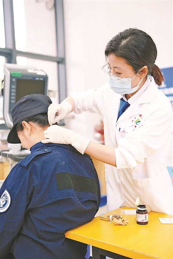 黄爱儿正为患者开展诊疗 |