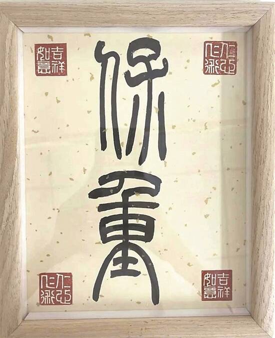 杨葵花护士长用篆书写了大大的“保重”两个字,同时将翁先生刻的印章盖在上面,装裱好回赠翁先生。“希望患者、家属、医护,都能收到这份美好祝福。”杨葵花护士长说。