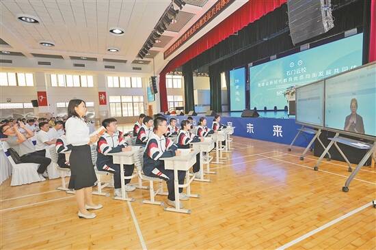 羊城晚报讯 记者李婷婷、通讯员黄国琼报道:一节5G双师直播互动课堂上,南海区石门中学(以下简称“石门中学”)骨干教师以1:1真人比例进行实时授课,与远端班级学生隔屏开展沉浸式课堂提问与互动……未来,这个教学场景可借助数字科技成为跨区域教学新常态。 近日,石门中学举办“石门云校暨新时代教育优质均衡发展共同体”发布会,广东省教育厅、佛山市教育局代表以及百余家学校、单位和机构齐聚,共同见证这一推动教育数字化转型与区域协同发展的新模式,共绘教育优质均衡发展新图景。 教育数字化是打破时空壁垒、促进教育优质均衡、实现教育高质量发展的关键变量和有力杠杆。发布会上,石门中学党委副书记、校长张国君为与会代表解读“石门云校”的核心架构与实践路径。 作为一所承载百年育人使命的岭南名校,石门中学以“石门云校”为优质教育资源的“输出端口”,面向佛山地区、广东省以及其他省市地区,输出优质教育资源,助力国家教育优质均衡发展。 据介绍,“石门云校”构建了课程协同、课堂协同、教研协同、资源协同、备考协同等“九大协同”体系。利用5G网络、高清直播设备、人工智能、大数据分析等技术,石门中学以“石门云校”为基石,依托5G双师互动课堂、AI智能成长分析等多元技术,将石门中学拔尖创新人才培养体系、成长监测体系、强基课程、思维课程、方法课程等资源进行结构化输出。 会上,湛江遂溪县第一中学党委书记陈华强作为联盟校代表,直言当前学校教学模式亟需破局,他表示希望携手石门云校,以“双师协同”为纽带,让学校链接上名校优质教育资源,尽享前沿教学成果,让每堂课凝聚跨区域智慧,让师生在共享中共创成长。 发布会上,与会领导代表上台共同按下启动按钮,标志着石门云校正式启航。 “希望石门云校成为教育共同体构建的新范式、教育数字化转型的新引擎、教育高质量发展的新实践。”广东省教育厅基础教育与信息化处干部、研究员黄志红表示,石门云校的启航是南海、佛山乃至广东省推进教育数字化转型的重大创新举措,相信在大家共同努力下,石门云校能不断创新教学范式,持续拓展人工智能应用规模,让优质资源在更大范围内共建共享,惠及更多师生,为全省教育数字化转型作出更大贡献。 石门中学党委书记田冬冬表示,面对“教育优质均衡”的国家战略,石门云校既是顺应科技浪潮的应时之举,更是辐射资源的必然选择。未来,石门云校将紧扣“自我迭代”与“协同发展”双重逻辑,与各校携手书写教育优质均衡发展的新篇章。