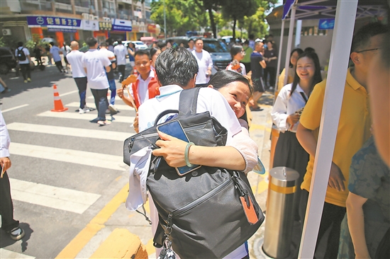 容山中学外,一位母亲给刚出考场的孩子一个大大的拥抱 |