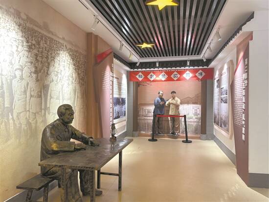 “罗阳书院·红色印记”展览,展示了“拓荒剧社”在一小排练演出的场景 |