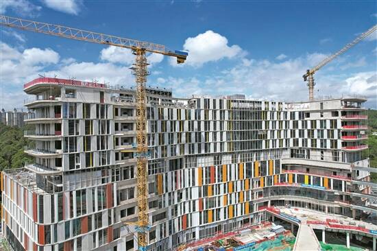 羊城晚报讯 记者李晓旭、通讯员王泽勋摄影报道:近日,记者从深圳市建筑工务署了解到,深圳市第三儿童医院项目正如火如荼建设,目前正开展外立面和室内装饰装修等施工,项目计划于2025年年底竣工验收。 深圳市第三儿童医院项目位于龙岗区龙岗街道协联路与清友路交叉口西南,建筑用地面积35319平方米,总建筑面积116620平方米,设计床位500张。 项目由深圳市建筑工务署组织建设,由中建五局第三公司承建,旨在填补深圳东部片区儿童医疗资源的空白,为市民提供更加优质的儿童医疗服务。 作为深圳市重点民生项目,深圳市第三儿童医院项目不仅提供先进的医疗设施,还将整合科研、教学和儿童康复等功能,致力于成为一座集医疗、科研、儿童保健与康复为一体的综合性儿童医院。项目紧扣“儿童友好型医院”的目标,力求为儿童患者营造一个温馨、舒适、安全的就医环境。 深圳市建筑工务署项目主任杨秀峰介绍,医院的“儿童友好”主要体现在建筑、室内设计及景观方面。医院外立面采用多层次的航船造型,结合色彩鲜明的视觉效果,力求通过建筑形态和设计元素,减少医疗空间带给儿童患者的心理压力。 同时,医院内部空间也充分考虑到儿童的生理和心理特点,大厅整体色调从橙色过渡到蓝色,大厅中央设置活动区,大厅与医疗街均设置不同功能的互动墙体,增加趣味空间,旨在缓解儿童患者在就医过程中可能产生的紧张情绪。 此外,医院还将在景观设计上进行创新,打造海洋主题的生态康复公园,并立足于儿童视角,打造一座森林医疗体验公园,一座静谧美好的花园。 整个医院的景观将分为多个功能区,首层景观既有海洋主题体验花园,又有滨河漫步区域和适合儿童活动的游玩场地,为患者、家属及医务人员提供一个轻松愉快的休闲空间;二层景观平台是人流到达医院的主要路径,设有海岸主题云桥,前广场与主入口大厅利用空中连廊连接市政道路;五层的天际花园还将为儿童提供一个充满阳光和自然气息的康复环境,帮助孩子们在疗愈过程中放松身心。 “随着医院建设的推进,深圳市第三儿童医院将按照深圳市建设儿童友好型城市的要求,将儿童友好建设理念贯穿于整个项目,致力于打造‘边界友好、尺度友好、活动友好、色彩友好’的儿童友好医院。”杨秀峰说。