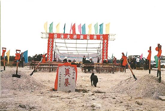 1991年,珠海大桥奠基典礼 珠海市档案馆供图 |
