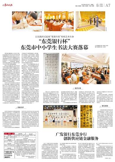 “东莞银行杯”东莞市中小学生书法大赛落幕