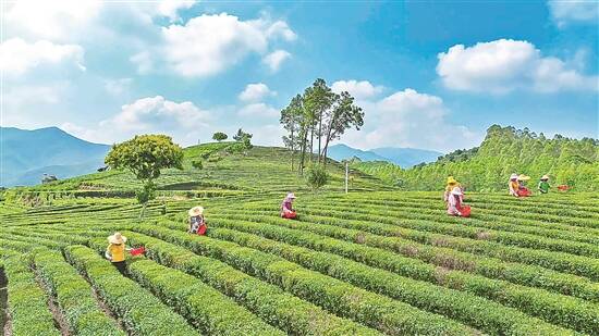得天独厚的水土滋养出茶叶的独特韵味。漫步万亩茶园,层层叠叠的茶垄如绿色波浪,空气中弥漫着清新的茶香 博罗融媒供图 |