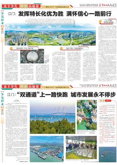 推动珠江口东西两岸融合发展,推进江门大广海湾建设,高质量建设承接产业转移主平台和大型产业集聚区,提升海洋工程装备制造业和海洋船舶工业、支持海洋药物和生物制品等新兴产业发展,做好新时代“侨”的文章、以侨为桥拓展对外交往交流,支持江门开平碉楼—赤坎古镇打造世界级旅游景区……从融入湾区、产业发展、平台建设、对外交流到文旅发展,省政府工作报告为江门指明了高质量发展的路径、方向,更增强了江门继续前行的信心。