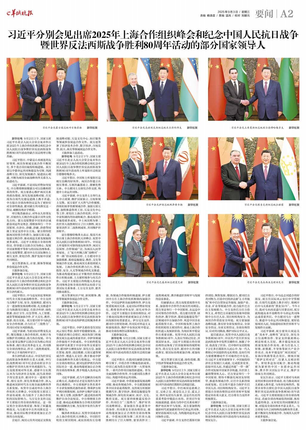 习近平分别会见出席2025年上海合作组织峰会和纪念中国人民抗日战争暨世界反法西斯战争胜利80周年活动的部分国家领导人